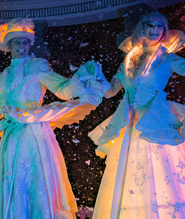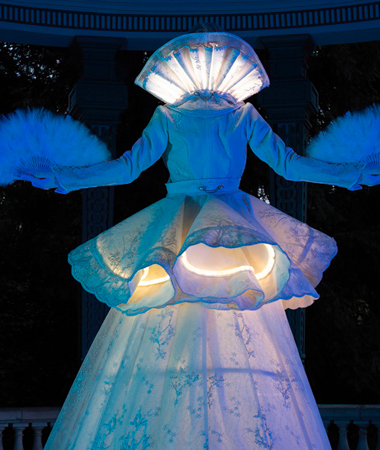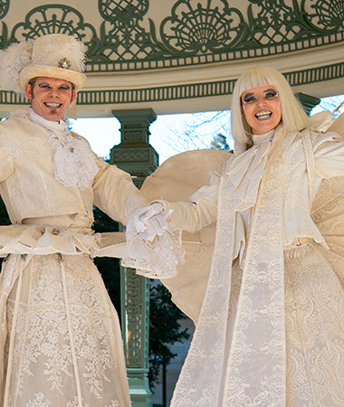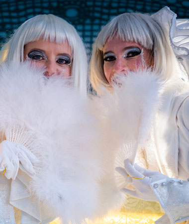 À la tombée de la nuit, leurs costumes immaculés se parent de reflets éblouissants, leurs silhouettes semblent alors vous inviter dans un rêve éveillé...
