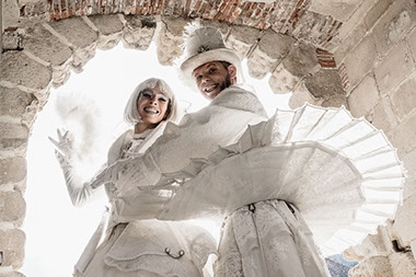 Avec le crépuscule, leurs costumes immaculés s'habillent de reflets éblouissants, leurs silhouettes semblent alors vous inviter dans un rêve éveillé..