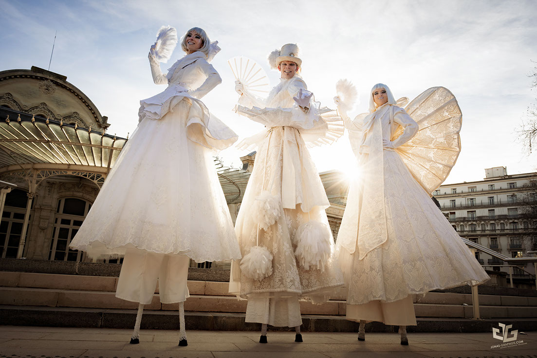 mariage, spectacle photocall décor, animation spectacle wedding planer haire d’honneur mariage animation musique lumière artistes soirée musicale lumineuse échassiers échassiers spectacle de rêve déambulation carnaval chars parade musique échassiers animation de rue, échassiers lumineux blancs parade carnaval