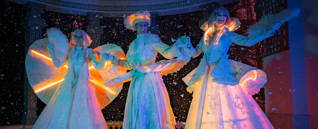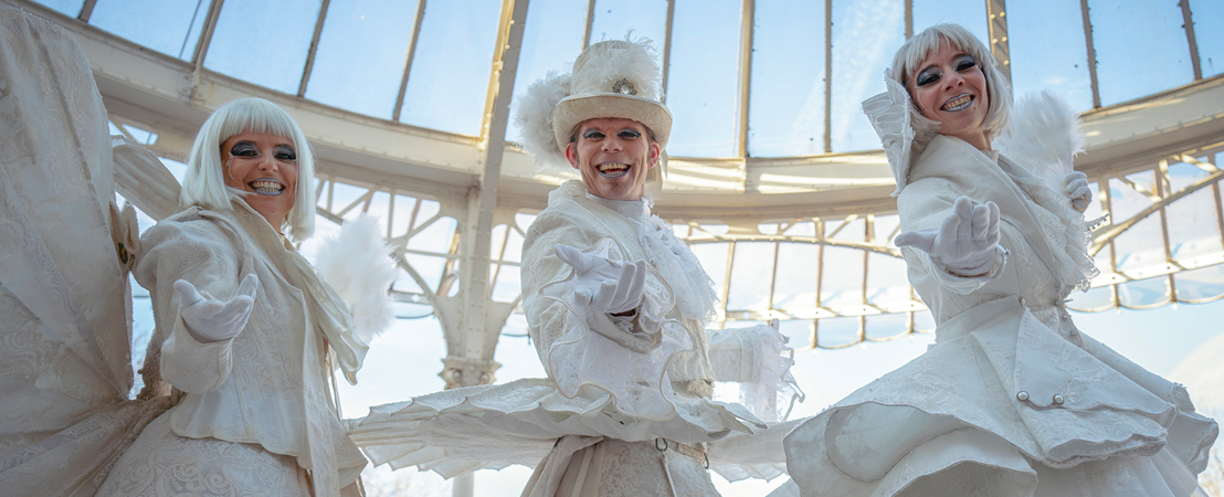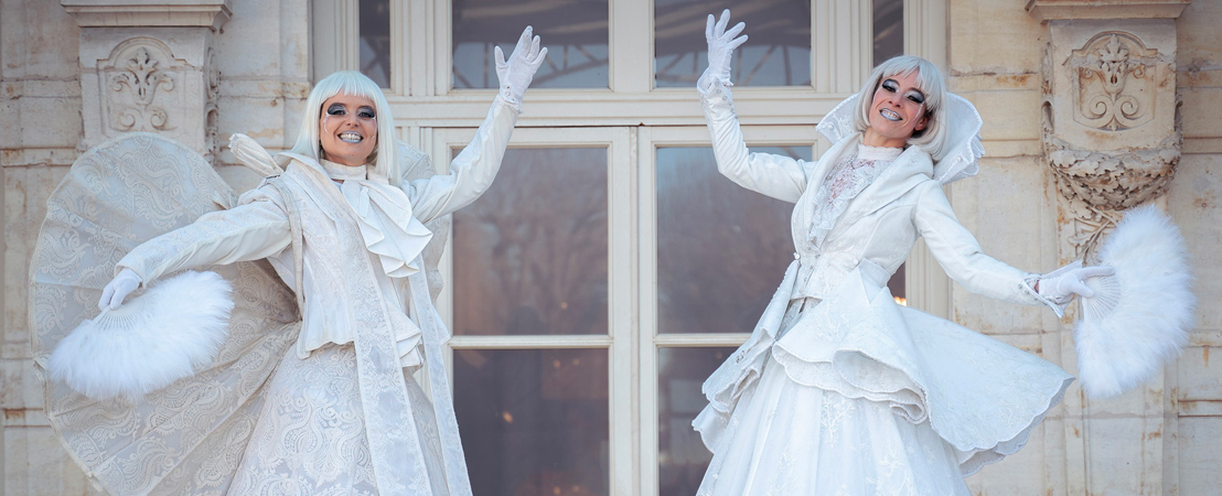 À la tombée de la nuit, leurs costumes immaculés se parent de reflets éblouissants, leurs silhouettes semblent alors vous inviter dans un rêve éveillé...