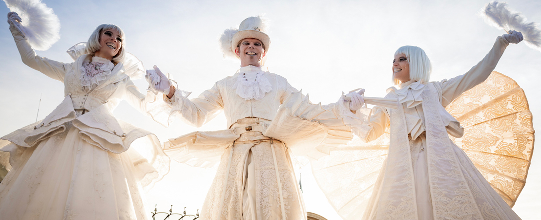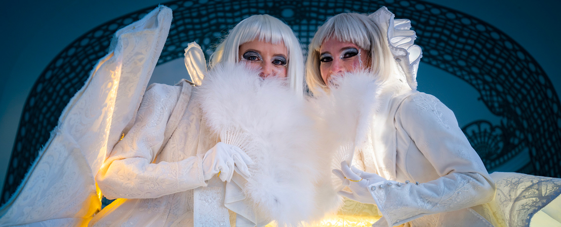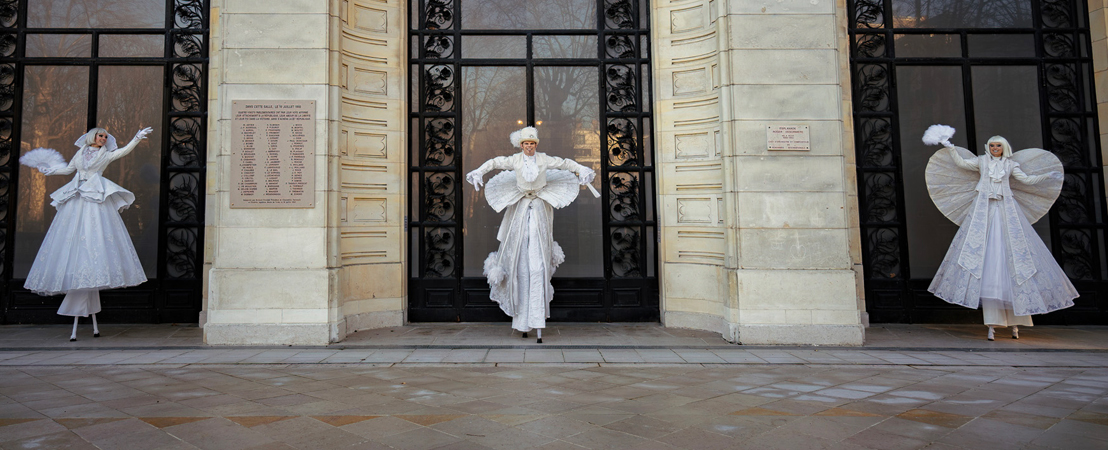 À la tombée de la nuit, leurs costumes immaculés se parent de reflets éblouissants, leurs silhouettes semblent alors vous inviter dans un rêve éveillé...